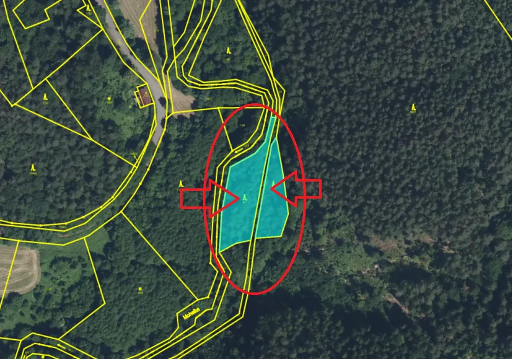 - p.č. 488 vedená jako lesní pozemek o celkové výměře 1 140 m2 (stáří lesa 79 let - zastoupení dřevin olše, stáří lesa 24 let - zastoupení dřevin střemcha, olše, buk).