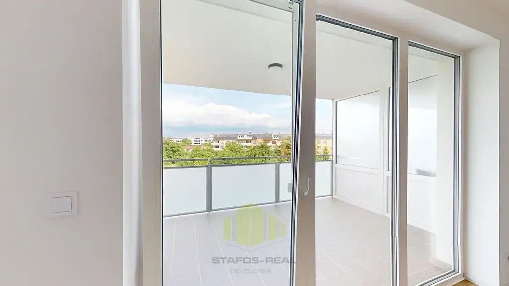 Nabízíme Vám byt 2+kk o podlahové ploše 55,5m2, který je korunován prostornou lodžií o rozloze 11,4m2. Celková plocha 66,9 m2. Prostor je promyšleně rozdělen na obývací pokoj s moderně vybaveným kuchyňským koutem, pohodlnou ložnici, vstupní halu, šatnu s nadstandardní kapacitou, koupelnu a samostatné WC. Vybavení kuchyňské linky na míru zahrnuje indukční desku, troubu, myčku a vestavnou lednici s mrazákem. V koupelně naleznete vanu s vanovou zástěnou, umyvadlo se skříňkou, otopný žebřík a přípravu pro pračku a myčku. Velkou devizou je také klimatizační jednotka, zajišťující tepelný komfort v jakémkoliv ročním období!