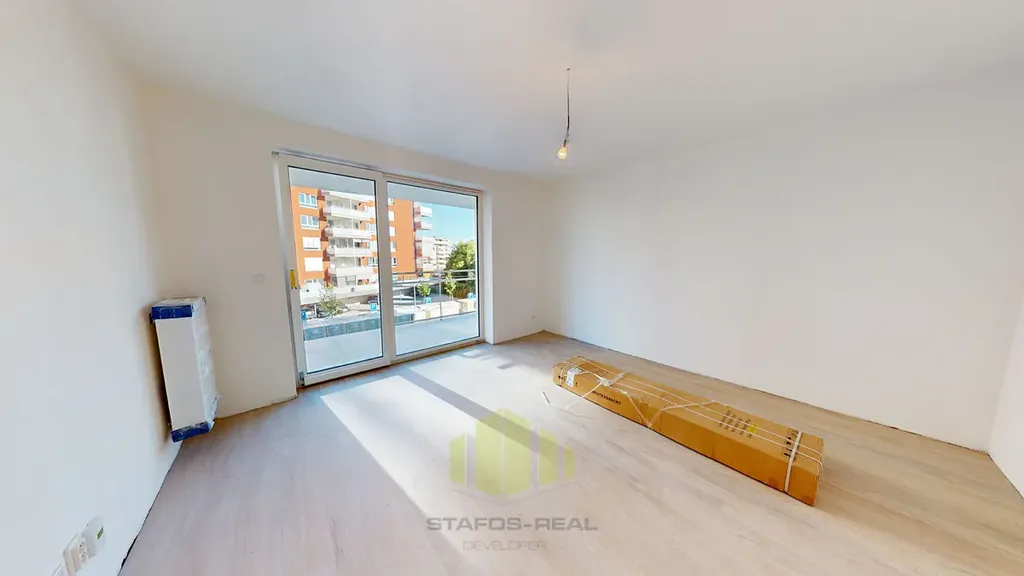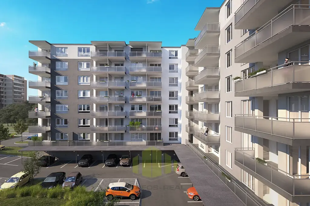 Vaše nové bydlení nabídne východní orientaci a obývací pokoj s kuchyňským koutem a vstupem na balkon. Součástí bytu je také vstupní hala, šatna, koupelna se sprchovým koutem a toaletou. Interiér je dokonalý až do detailu - vinylovou podlahu doplňují okna s trojsklem, moderní keramické obklady a dlažba v koupelně, či klimatizace u vybraných bytů a vnitřní žaluzie.