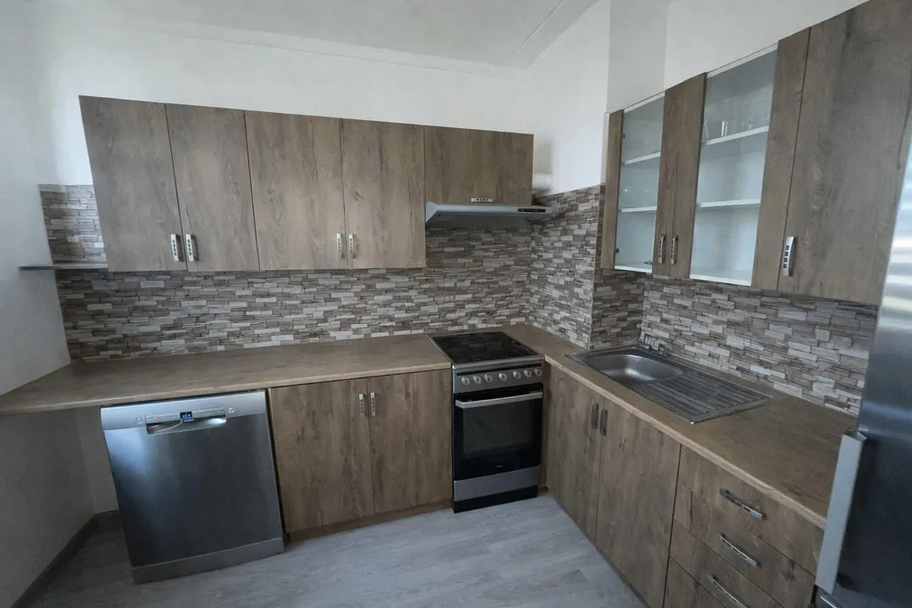 V kuchyni je prostorná kuchyňská linka do tvaru L s elektrickým sporákem a digestoří. Koupelna je obložena moderními obklady, vybavena vanou a umyvadlovou skříňkou se zrcadlem, WC odděleno. Praktický prostor pro pračku a sušičku připraven v chodbě.