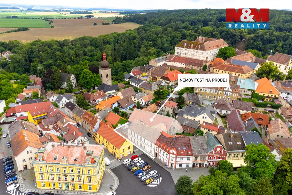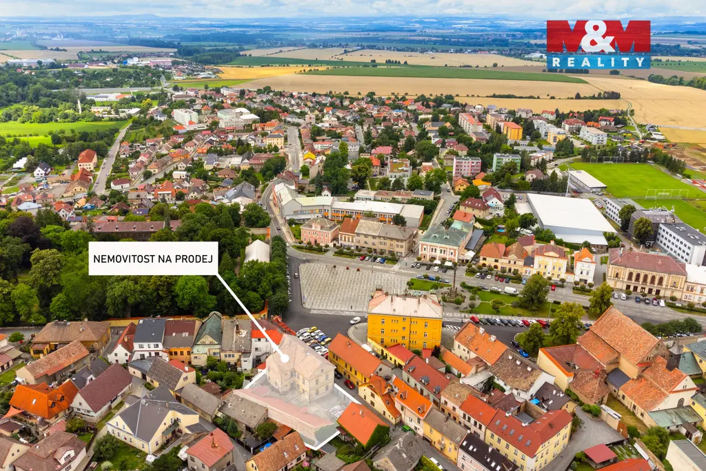Výborná poloha v centru obce u Kupkova náměstí s atraktivním potenciálem pro pronájem nebo prodej jednotek.