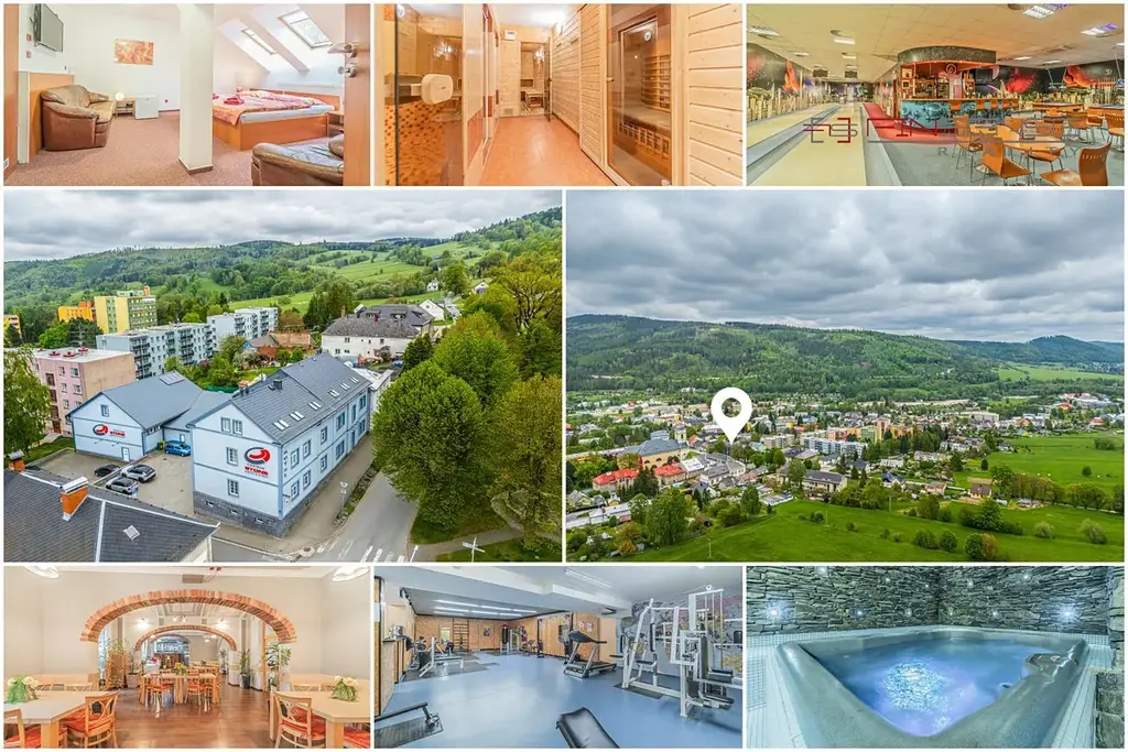 Nabízíme k prodeji hotel v srdci Jeseníků s celkovou kapacitou 17 pokojů, které jsou situovány v patře i podkroví objektu. Hotel je vybaven bowlingem s klubem a kulečníkem, wellness centrem se saunami, vířivkou, soláriem a vlastní posilovnou. Součástí je také prostorná restaurace s kapacitou přibližně 60 míst a plně vybavenou kuchyní. Je zde možnost venkovního posezení. Objekt disponuje vlastním parkovištěm a lyžárnou.