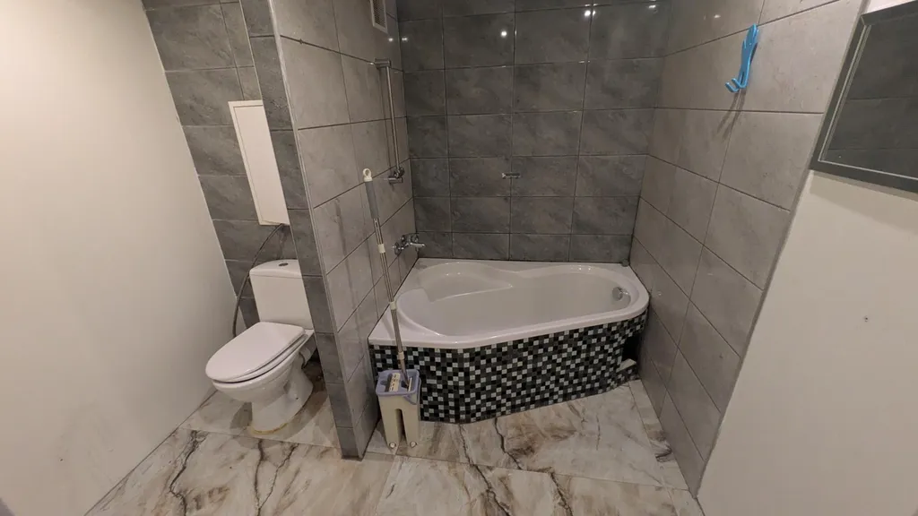 V kuchyni je pěkná kuchyňská linka s elektrickými kamny. Koupelna obložena vkusnými obklady a vybavena rohovou vanou, WC odděleno příčkou. Místnosti jsou prostorné. Po celém bytě jsou plovoucí podlahy.