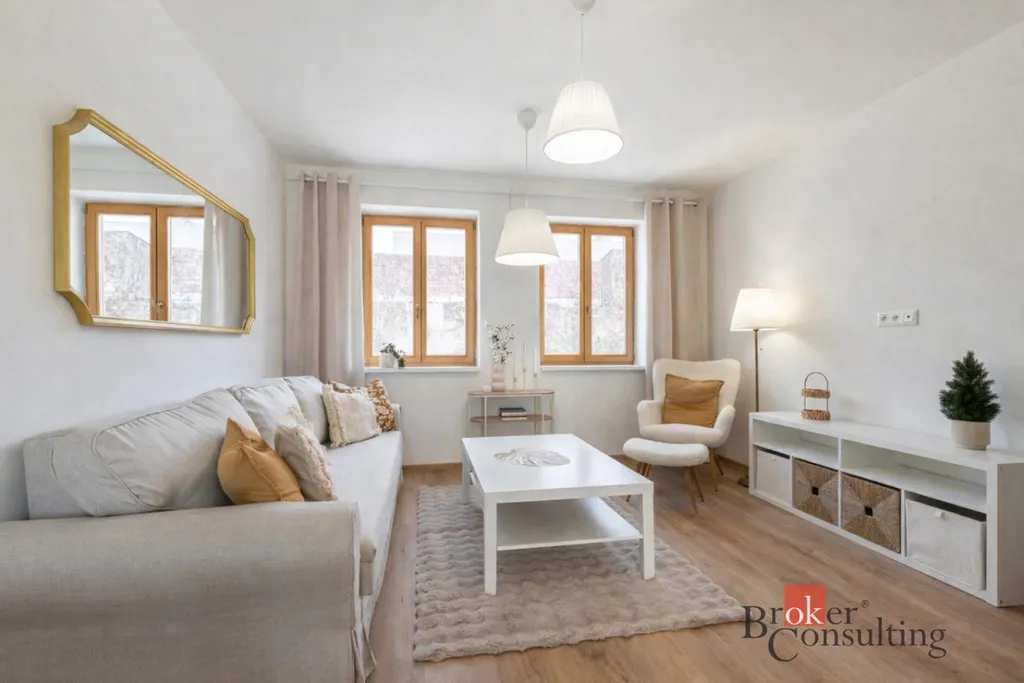 Byt o velikosti 50 m² zaujme efektivním rozložením prostoru a příjemnou atmosférou. Nachází se v klidném vnitrobloku přímo v centru Valtic, takže máte vše po ruce, ale zároveň si užijete soukromí a klid.