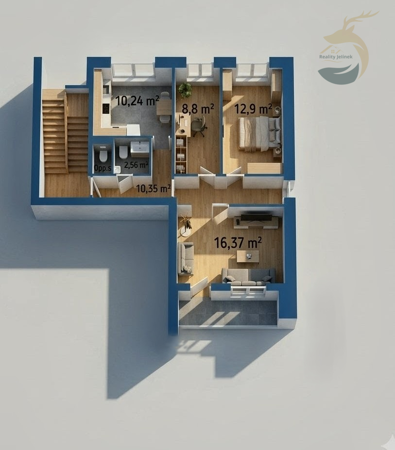 Velkou přidanou hodnotou je zasklená lodžie o velikosti cca 6 m² s kvalitním dvojsklem, která funguje jako plnohodnotné rozšíření obytného prostoru. V praxi ji můžeš využívat jako další místnost navíc – místo na relax, práci nebo jen klidné posezení s výhledem do okolní krajiny.