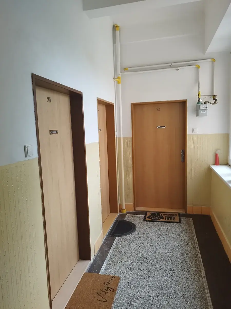 K bytu náleží prostorný sklep o vel. 5m2 v suterénu domu. Ohřev vody je zajišťován bojlerem, vytápění WAF, v bytě je plynový sporák s troubou a na podlahách PVC. K domu patří prostorná a udržovaná zahrada. Parkování je možné před domem a v přilehlých ulicích, v místě jsou modré i placené zóny.