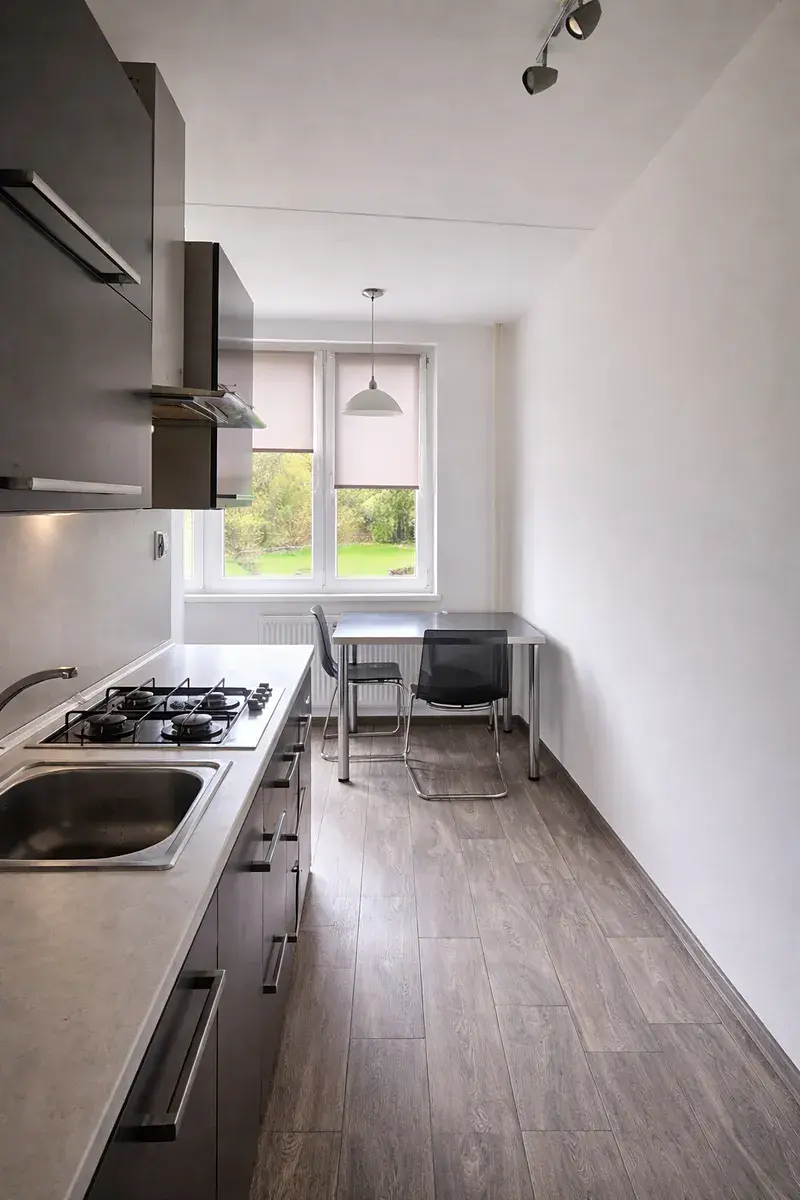 Dispozice 2+1 poskytuje dostatek prostoru pro obývací část, ložnici a kuchyni, kde si můžete vytvořit útulný domov dle svých představ.
