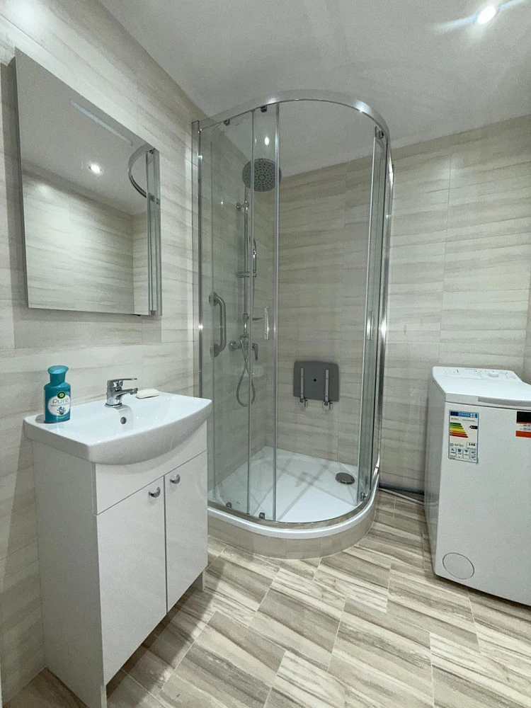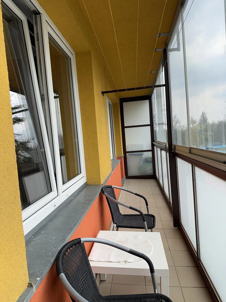 Byt prošel částečnou rekonstrukcí najdete zde novou moderní koupelnu se sprchovým koutem i toaletu, což výrazně zvyšuje komfort bydlení. Ve sprchovém koutě je instalována sedačka a madla, toaleta je vyvýšená a jsou zde také madla, dveře 80 cm, takže bydlení je vhodné i pro tělesně handicapované obyvatele. Dalším velkým benefitem je prostorná zasklená lodžie přes celý byt, na kterou se vstupuje z pokoje, ideální pro ranní kávu i večerní odpočinek.