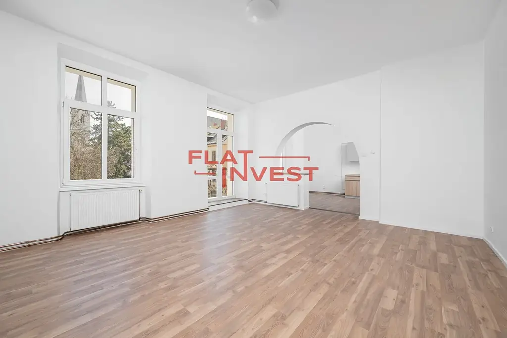 Nabízíme k pronájmu nezařízený, zrekonstruovaný a útulný byt o dispozici 3+kk a podlahové ploše 106 m² s balkonem v 2. NP zrestaurovaného činžovního domu v centru Liberce.