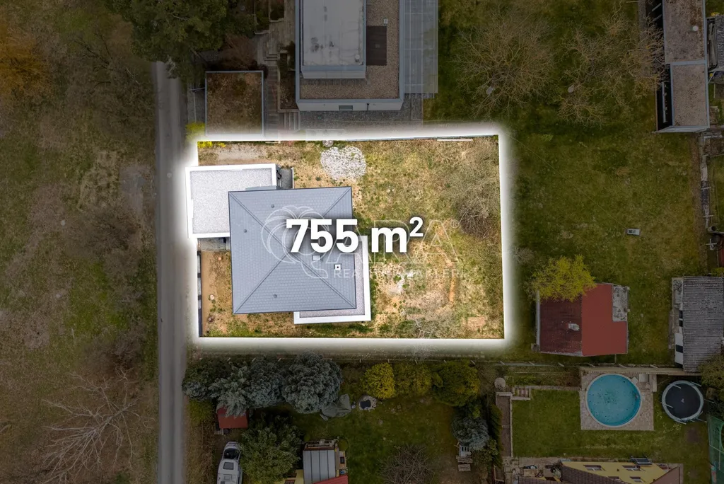 Pozemek o velikosti 755 m² nabízí dostatek prostoru pro děti, odpočinek i zahradní aktivity.