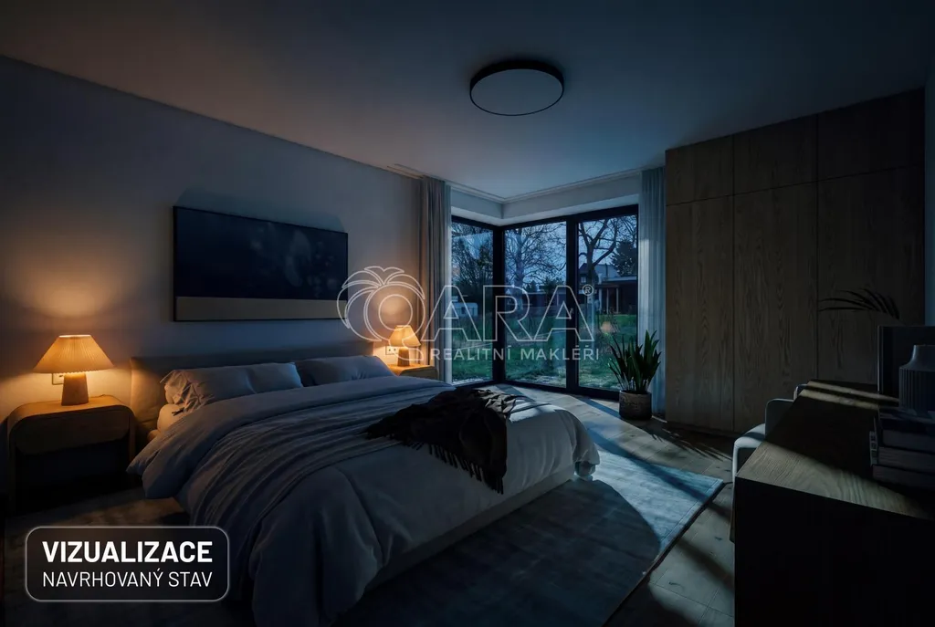 Součástí je také velkorysá garáž o ploše 44 m² s navazujícím skladem nebo dílnou, ideální nejen pro parkování dvou vozů, ale i pro hobby a uskladnění všeho potřebného.