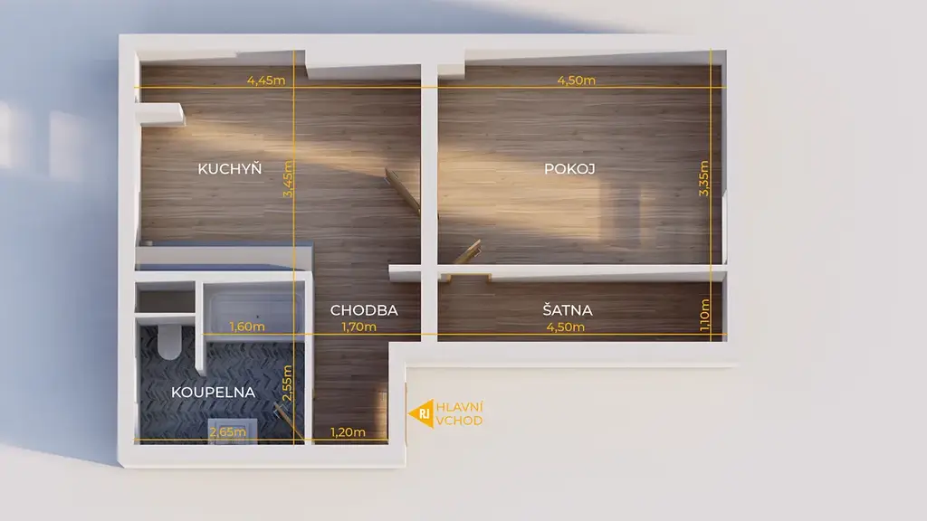 • vedle obývacího pokoje prostorná šatna