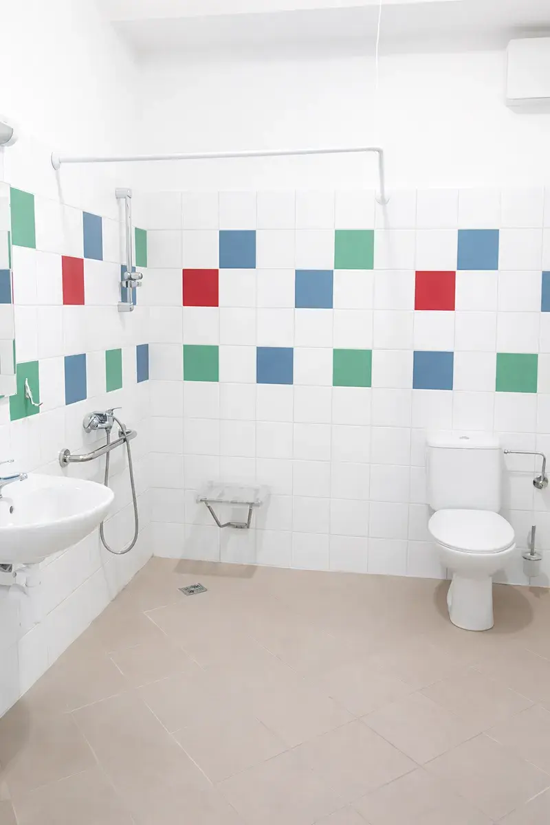 Koupelna s WC cca 5,5 m²: Prostorná a plně bezbariérová.