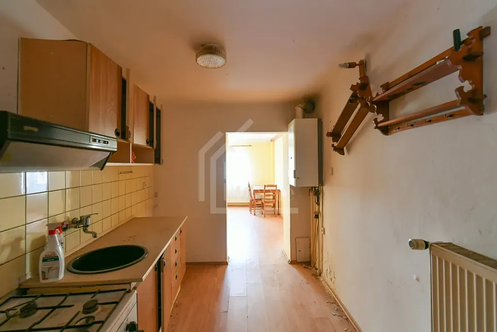 Topení: plynový kotel, radiátory.