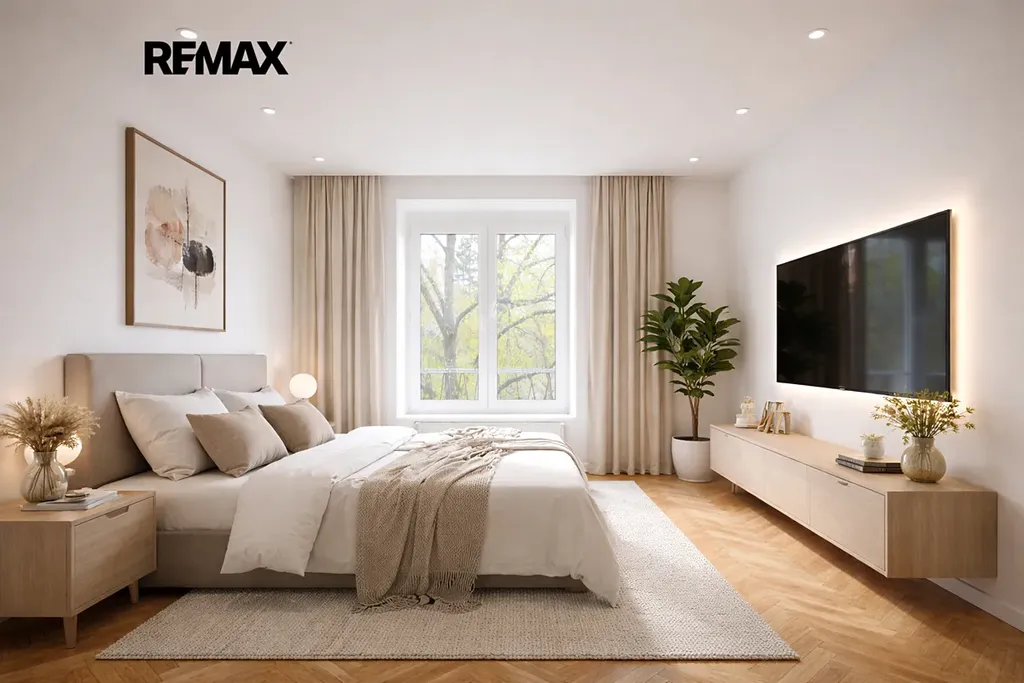 Součástí obrazové prezentace jsou také vizualizace, které ukazují možnou podobu bytu po rekonstrukci a pomáhají lépe představit jeho potenciál.