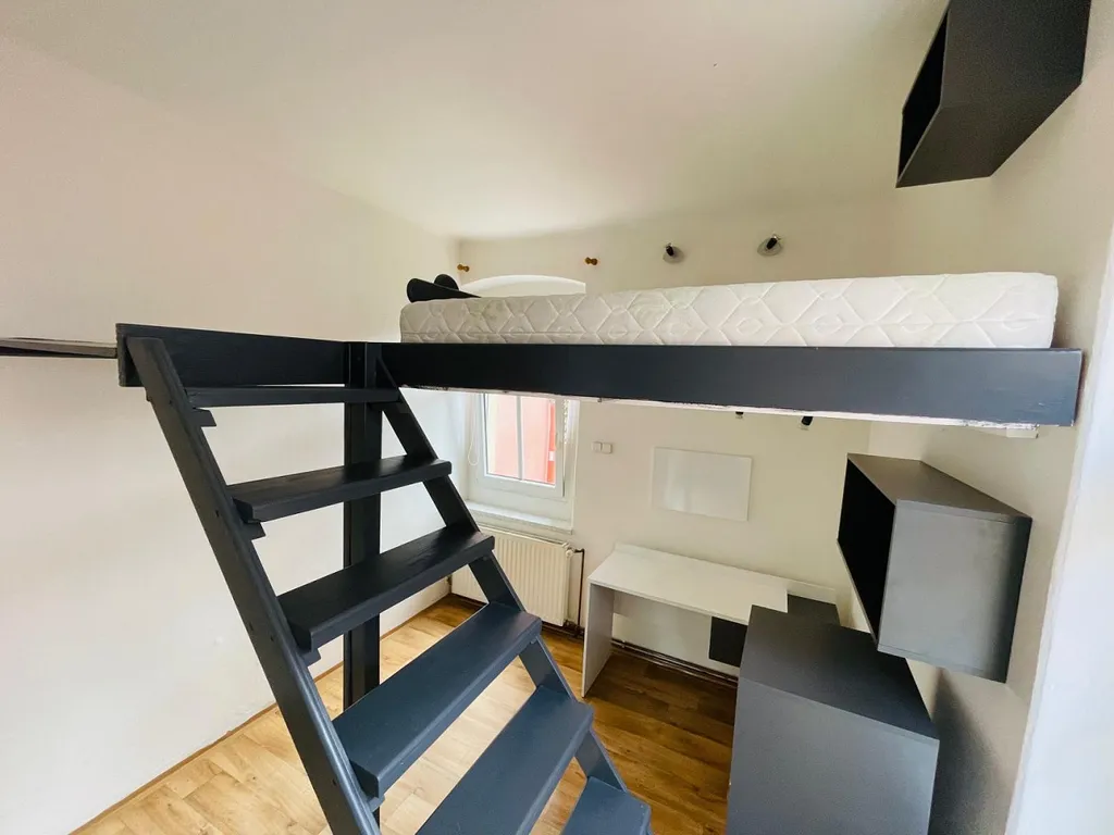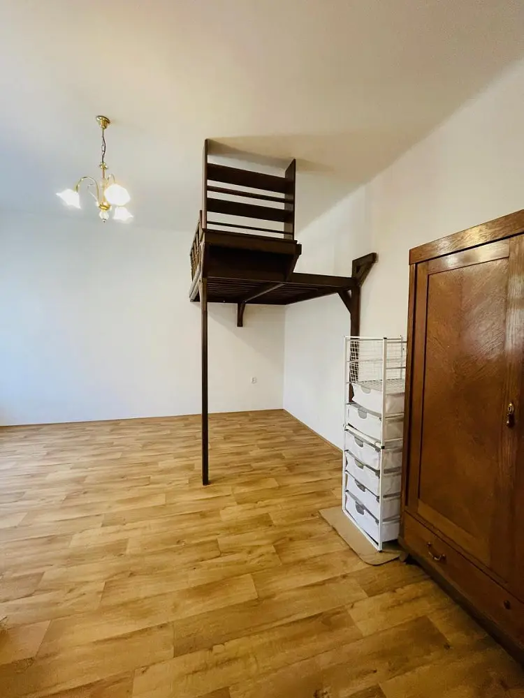 v ložnici s šatnou je patrová postel , kterou lze na přání nájemníka demontovat a odstranit