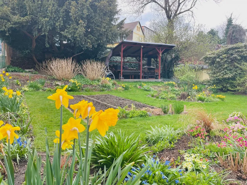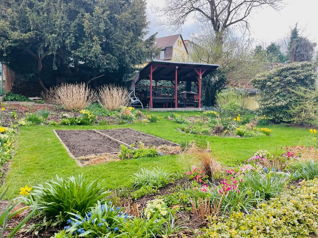 Velkou výhodou je krásná, upravená zahrádka u domu, která nabízí příjemné posezení a prostor pro relax.
