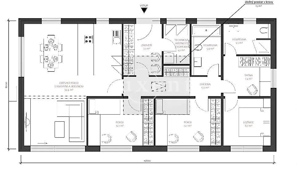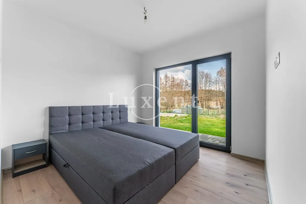 Dům o dispozici 4+kk a užitné ploše 112 m² nabízí prakticky řešený a vzdušný interiér s důrazem na komfort rodinného bydlení. Hlavní obytný prostor je propojen s kuchyňským koutem a umožňuje přímý vstup na zahradu o celkové výměře 948 m², která poskytuje dostatek soukromí i prostoru pro relaxaci, rodinné aktivity nebo další úpravy dle vlastních představ.