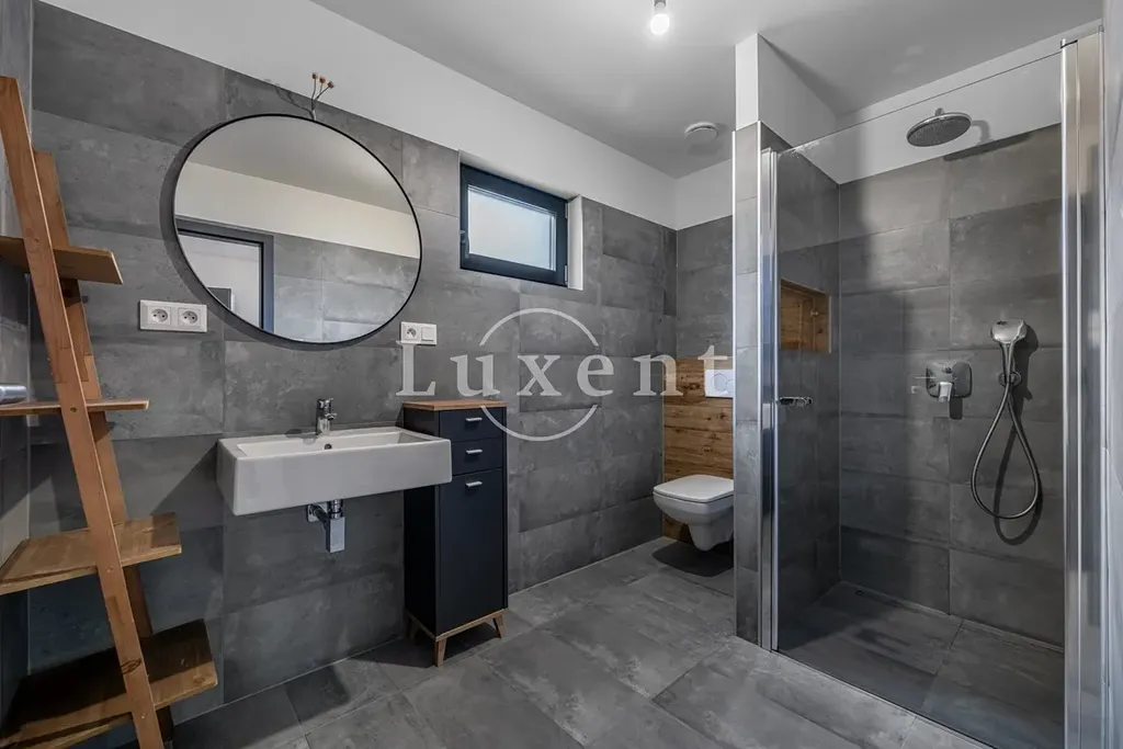 Nemovitost je dokončena v základním standardu, přičemž součástí jsou hotové podlahy, koupelny, kuchyňská linka i venkovní žaluzie, což umožňuje okamžité užívání s možností doladění detailů podle individuálních preferencí nového majitele. O moderní a úsporný provoz domu se stará tepelné čerpadlo v kombinaci s rekuperací, které zajišťují nízké provozní náklady a zároveň zdravé a komfortní vnitřní prostředí po celý rok.
