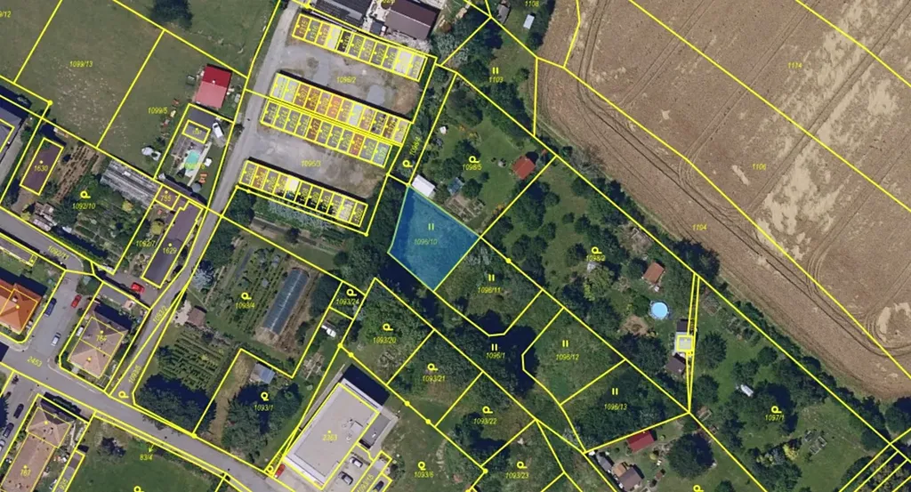 Parcela má přibližně lichoběžníkový půdorys a je určená k výstavbě rodinného domu.