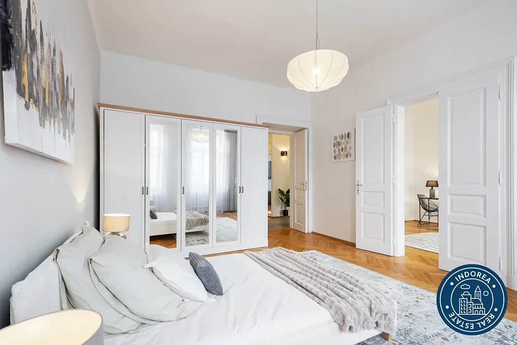 Nabízíme k pronájmu výjimečný byt o dispozici 3+kk a celkové ploše 116 m², situovaný ve 3. nadzemním podlaží udržovaného činžovního domu s novým výtahem v prestižní ulici Lesnická na Smíchově. Jedná se o stylové bydlení s atmosférou staré Prahy, doplněné moderním komfortem a nádhernými výhledy na Vltavu, Jiráskův most i Tančící dům.