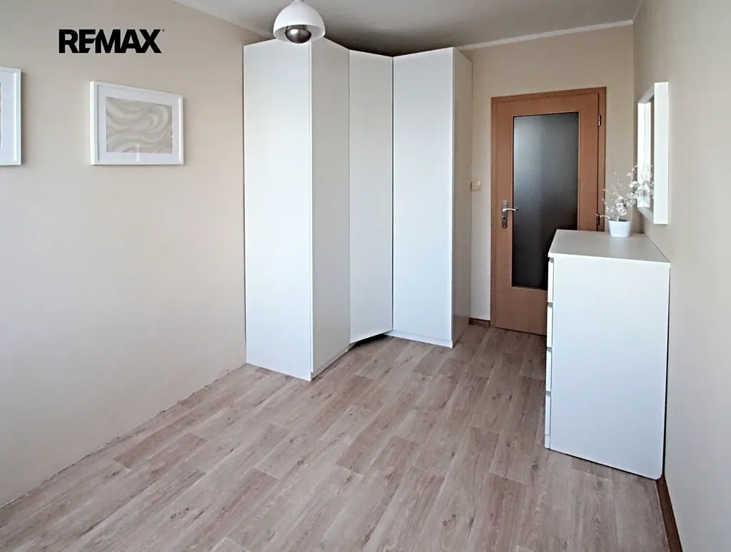 Po levé straně jsou dva samostatné pokoje, částečně vybavené (sklopná postel, skříňová sestava, komoda)