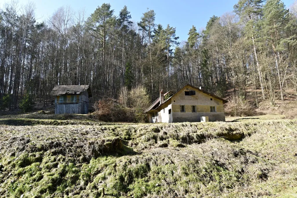 Pozemek je promyšleně členěný a každý metr má své využití. Zastavěná plocha a nádvoří (570 m²) tvoří solidní základ pro výstavbu rodinného domu. Rozlehlý travní porost (2 191 m²) nabízí prostor pro zahradu, sad, relaxační zónu nebo dětské hřiště. Lesní pozemek (878 m²) dodává celku něco, co si jinde za žádné peníze nepořídíte přirozené soukromí, stín a zelenou bariéru od okolního světa. Součástí je i drobná chatka k vlastním úpravám a dva zachovalé sklepy ze štuku autentická řemeslná práce, která budoucímu majiteli poslouží od vinného sklípku po originální úložný prostor.