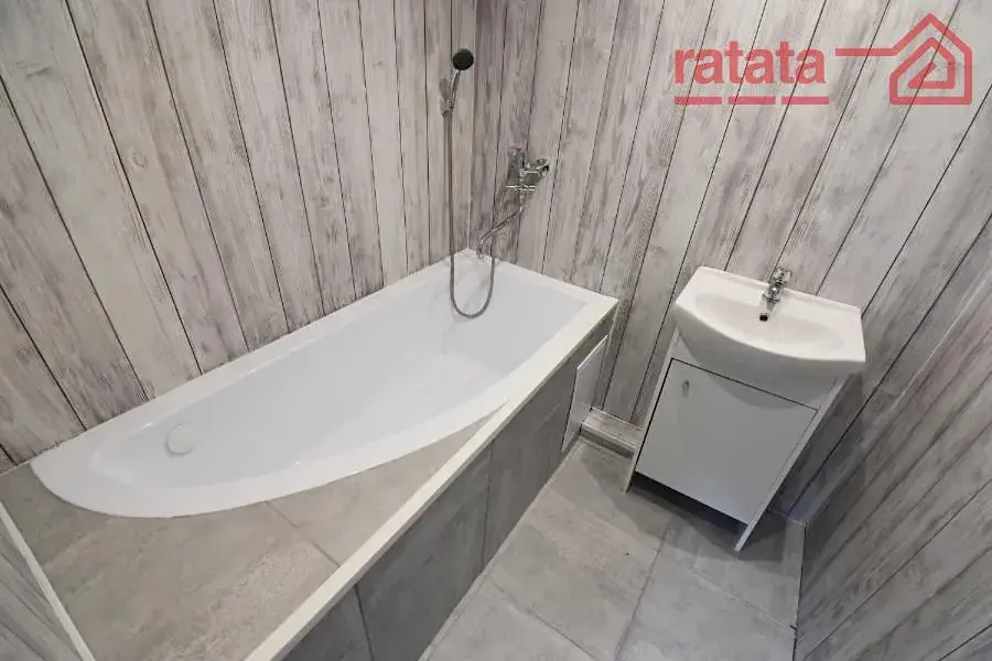 Je zde nová kuchyňská linka, plynový sporák, rohová vana s umyvadlem a WC. Na podlahách je položeno lino a dlažba. Byt je volný k nastěhování od 1.5.2026.