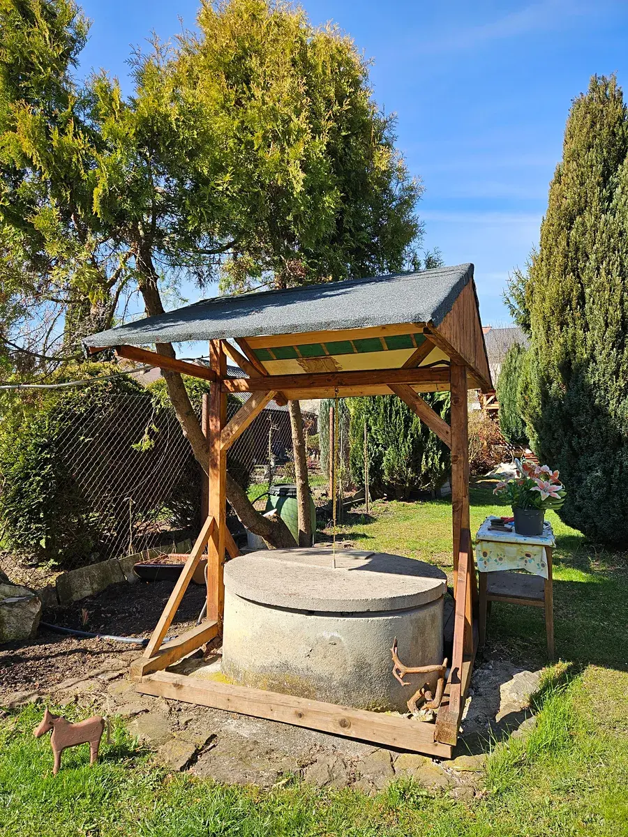 Na zahradě je umístěn zahradní domek z roku 1990 se zavedenou elektřinou, vodou a odpadem do městské kanalizace. Kromě zahradního domku se na zahradě ještě nachází altánek, udírna, studna a v zadní části zahrady je kůlna na dřevo.