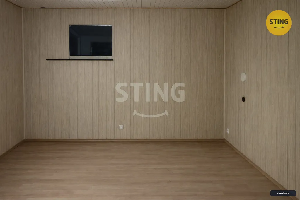 Fotografie interiéru jsou řešeny jako porovnání vizualizace stavu stávajícího vyklizeného a budoucího možného.