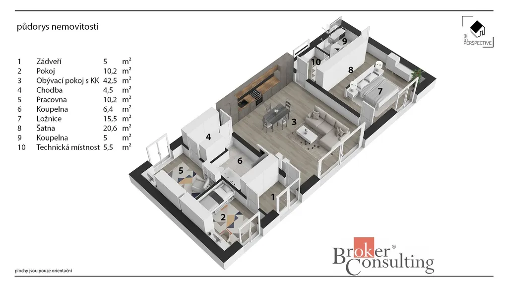 - ložnice se šatnou (20,6 m²) a soukromou koupelnou