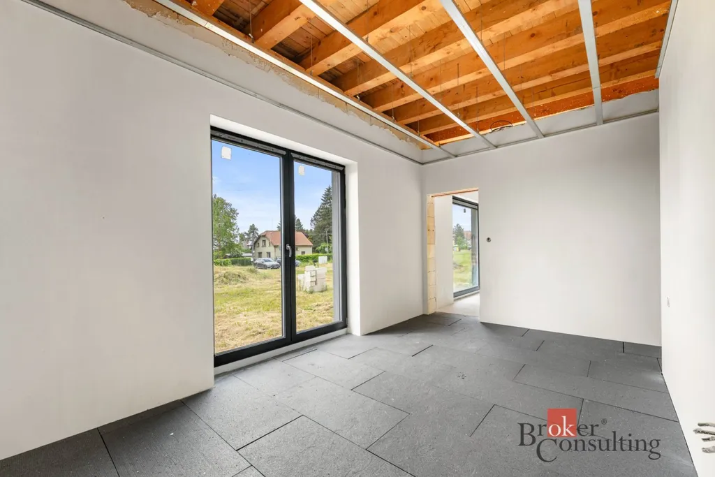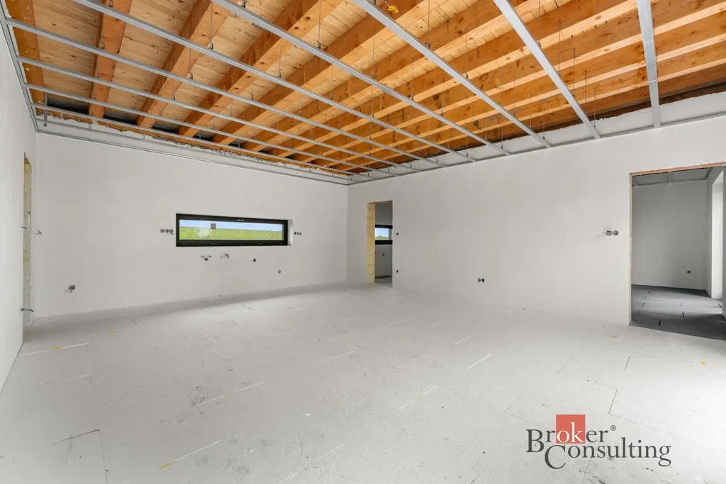 Stavba je navržena s ohledem na moderní energetická řešení – počítá s vytápěním prostřednictvím teplovodního podlahového systému napojeného na tepelné čerpadlo vzduch–voda a také s instalací fotovoltaické elektrárny. Dokončení domu je plně ve Vašich rukou – finální řešení technologií a vybavení bude záležet na novém majiteli. O možnostech a aktuálním stavu Vám rádi řekneme víc při osobní prohlídce.