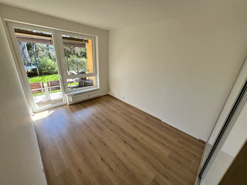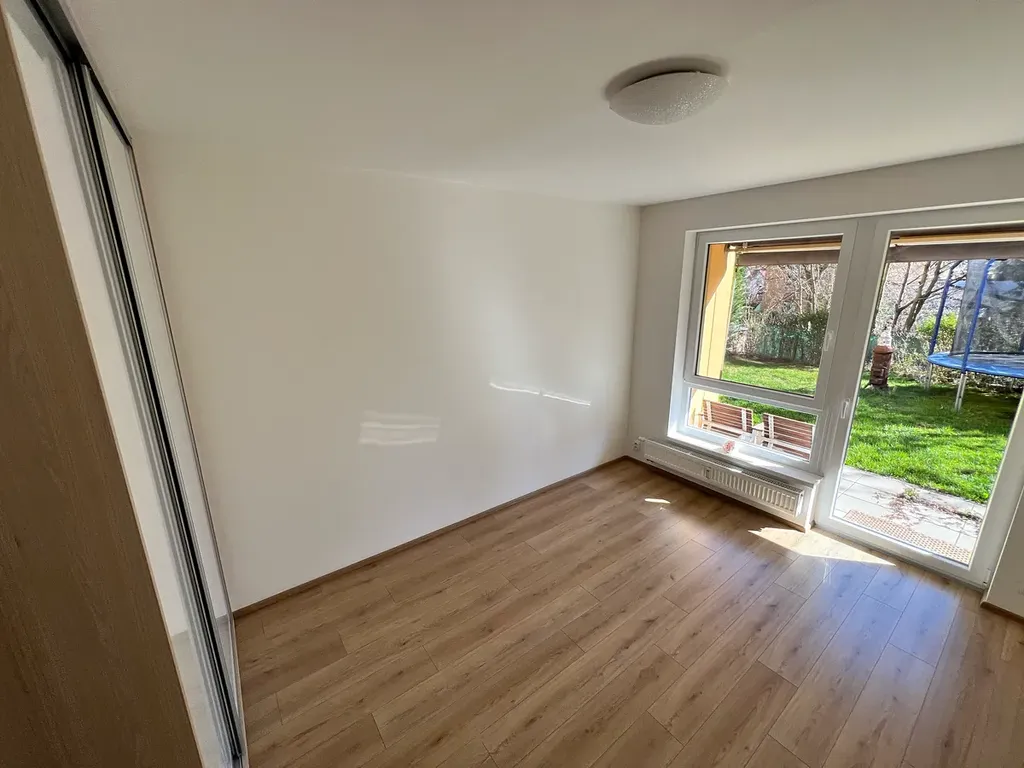 Součástí vybavení je kuchyňská linka včetně spotřebičů a vestavěné skříně v pokojích i na chodbě. Okna jsou opatřena sítěmi proti hmyzu. K dispozici je samostatná zahrada (s vlastním parcelním číslem) o výměře 135 m2. Byt je orientován na jihovýchod.