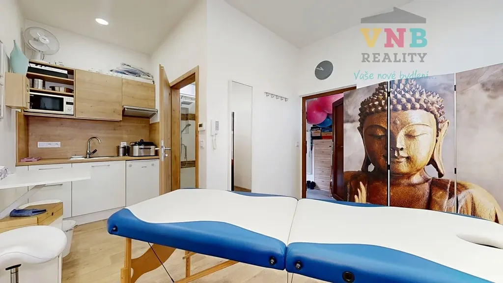 Další část domu tvoří prostor s vlastním vstupem z ulice, nyní využívaný jako jógové studio. Tento prostor nabízí široké možnosti – může sloužit jako zázemí pro podnikání, domácí kancelář, ale také jako herna, klubovna nebo další obytná jednotka pro členy rodiny.