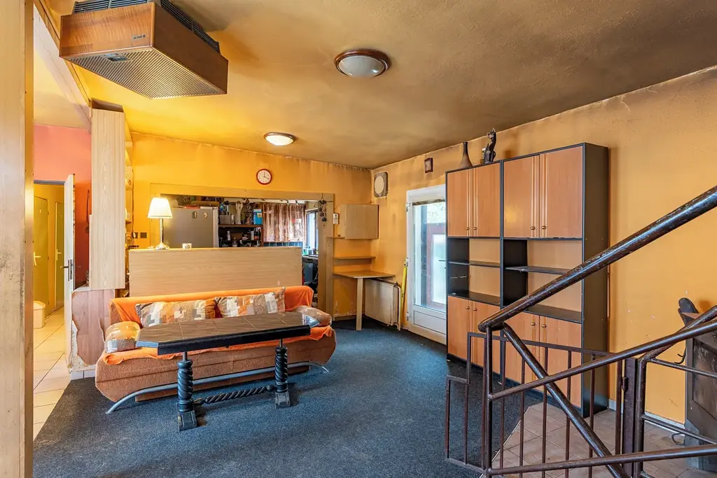 Nebytové prostory jsou přístupné z domu, ale mají i přímý vstup zvenku. Dispozice - velká společenská místnost, kuchyně se zázemím pro přípravu jídel, toalety a přímý vstup do suterénu, kde je místnost, která sloužila jako bar. Po stavebních úpravách je možné ho upravit na bydlení.