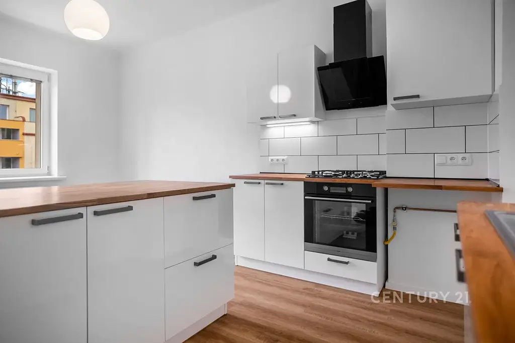 Obývací pokoj s kuchyňským koutem je prosvětlený a díky výhledu do klidné ulice nabízí příjemné prostředí pro relaxaci i každodenní život. Kuchyň je vybavena moderními spotřebiči a dostatečným množstvím úložných prostor. Ložnice poskytuje dostatek soukromí a klidu pro odpočinek.