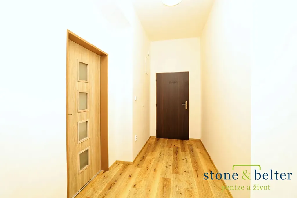 Nabízíme k pronájmu klidný byt 2+kk po rekonstrukci ve 4. NP cihlového domu v Bubenečské ulici v Praze – Bubenči. Užitná plocha bytu činí 59 m² a skládá se z předsíně (13,5 m²), obývacího pokoje s kuchyňským koutem (18 m²), ložnice (24,1 m²) a koupelny s toaletou (2,9 m²).