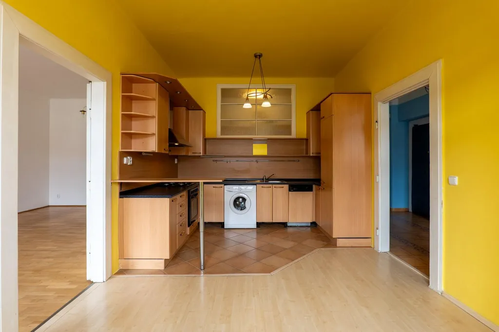 Nabízený byt 2+kk/B je prostorný a světlý, celková plocha bytu je 61,9 m2 + balkon 2 m2, k bytu dále náleží sklepní kóje v suterénu domu 3,5 m2. Byt disponuje vstupní předsíní, pokoje s kuch. koutem, ložnicí, koupelnou, samostatným WC a 2 komorami. Díky svému umístění ve 4.patře domu je byt světlý a je z něj příjemný výhled, za jasného počasí až na Pražský Hrad. Byt je ve velmi dobrém, udržovaném stavu. Na podlaze je položena dlažba, parkety a plovoucí podlaha. Vytápění a ohřev teplé vody zajišťuje samostatný plynový kotel. Byt je vybaven kuch. linkou s varnou deskou, troubou, digestoří, myčkou, pračkou, lednicí s mrazničkou. V bytě je instalován optický kabel na připojení k internetu. Byt je připraven k okamžitému nastěhování, nový vlastník si samozřejmě může byt upravit dle svých potřeb a požadavků.