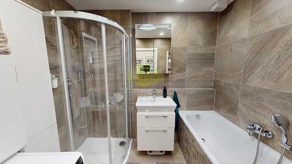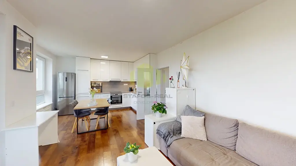 Nabízíme Vám k dlouhodobému pronájmu jedinečný Jihovýchodní byt ve 4.NP zánovní novostavby bytového domu, o dispozici 3+kk o ploše 96 m2 včetně prosklené terasy o ploše 19 m2 ve velmi žádané a klidné lokalitě k bydlení, na ulici Topolová, v Olomouci Slavoníně. Bydlení v této lokalitě se vyznačuje především dostatečným soukromím díky malé zastavěnosti v okolí - krásným výhledem na Slavonín a přírodním rybníkem “Hamrys”, zvukovým a tepelným komfortem a tedy nízkými náklady na bydlení. Tento dispozičně precizní byt se skládá z obývacího pokoje o ploše cca 30 m2 s kuchyňským koutem (spotřebiče zn. Beko), dvěma ložnicemi o ploše nad 12 m2 s vestavěnými skříněmi, samostatné šatny přístupné z předsíně s úložným systémem, koupelny a samostatné toalety. V bytě přípojky na TV i internet. Koupelna vybavená vanou i sprchovým koutem, přípojkou na pračku a sušičku, otopným žebříkem, umyvadlem se skříňkou, zrcadlem a světlovodem, který zajistí denní světlo bez svícení. Světlovod je také umístěn v chodbě bytu. Odtah par v koupelně i wc, wc závěsné Geberit včetně praktického malého umyvadla. Podlahy v bytě tvoří kvalitní vinylová podlaha a dlažba v koupelně a na toaletě. Byt spadá svou energetickou náročností do třídy B - velmi úsporná! Nájem bez inkasa činí 25.000,- Kč, inkaso cca 4.000,- Kč + elektřina cca 1.000,- Kč - 1.200,- Kč dle spotřeby. Kauce ve výši dvou měsíčních nájmů vč. služeb a energií + odměna RK ve výši jednoho nájmu + 21%DPH. Možnost výběru internetu od poskytovatele Nordic O2. K nájmu bytu náleží garážové stání se sklepem a exklusivní samostatná garáž umístěná hned vedle v suterénu domu. Za zmínku také stojí bezbariérový přístup do domu, moderní výtah a skvělá dopravní dostupnost s rychlým příjezdem na dálnici, kompletní občanská vybavenost v dosahu, vedle domu také dětské hřiště. Info o termínech prohlídek u makléře. Nastěhování od 1.7. 2026.