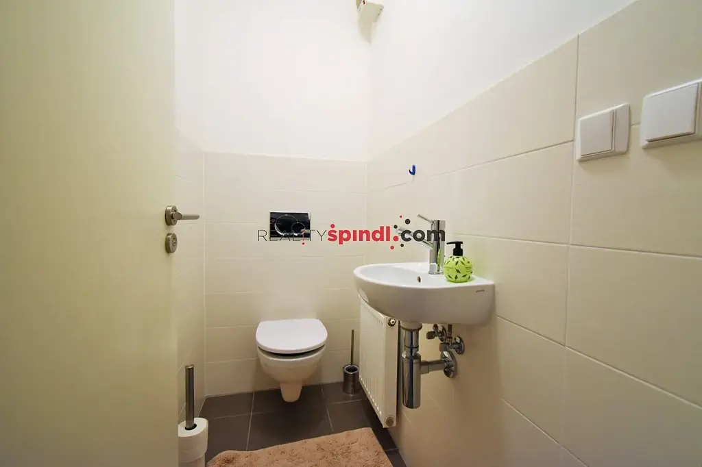K bytu náleží parkovací stání v temperovaných garážích na úrovni garážových vrat (bez nutnosti využití autovýtahu) a také samostatný box pro úschovu lyží.