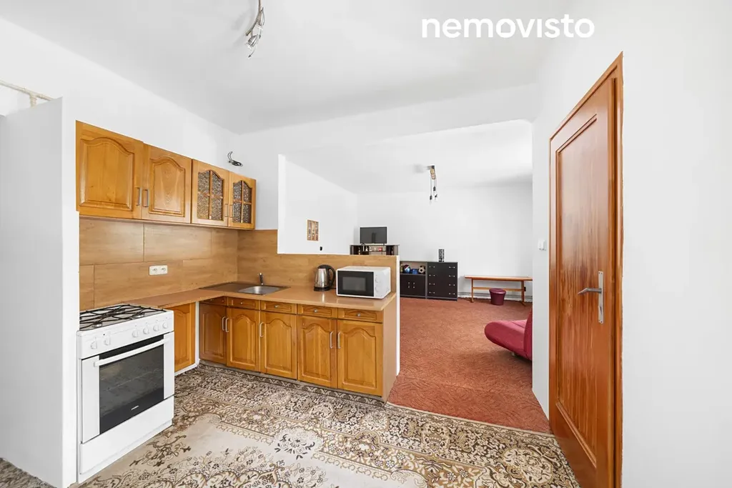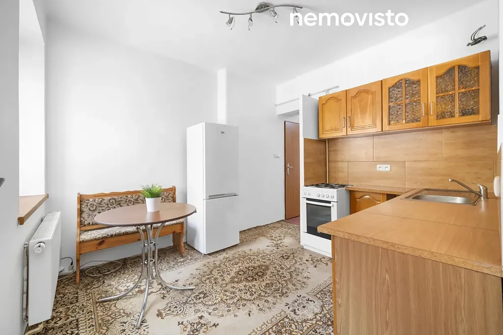 Městská část Hrabová je velmi oblíbené místo k bydlení, protože si zachovává svůj vesnický charakter a přitom jste za pár minut ve městě. Nízká zástavba nabídne překvapivě moderní dispozici bytu 2+KK. Velkou kuchyni a obývacím pokojem o výměře skoro 30 m2. Naproti kuchyně se nachází praktická spíž. Ložnice je přístupná z chodby a má výměru 14 m2. V chodbě najdeme nový plynový kotel, který se stará o vytápění a ohřev teplé vody. Koupelna nabídne vanu, prostor pro pračku a hlavní výhodou je okno. Toaleta je samostatná.