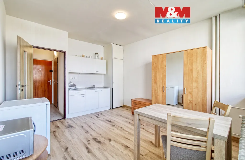 Nabízíme k pronájmu světlý byt 1+kk s lodžií v 6. patře panelového domu s výtahem. Byt je po rekonstrukci a částečně zařízený: kuchyňská linka, elektrická varná deska, mikrovlnná trouba, lednice, skříň, komoda, stůl, židle, skříňka, botník se zrcadlem a vestavěná skříň. Nájemné činí 7 500 Kč/měs. bez energií. Při podpisu Nájemní smlouvy je nutno složit kauci 15 000 Kč, nájemné na daný měsíc a provizi zprostředkovatele. Byt je volný a ihned k nastěhování. Veškerá občanská dostupnost se nachází v docházkové vzdálenosti. U domu je dětské hřiště. Zarezervujte si včas svůj termín prohlídky.