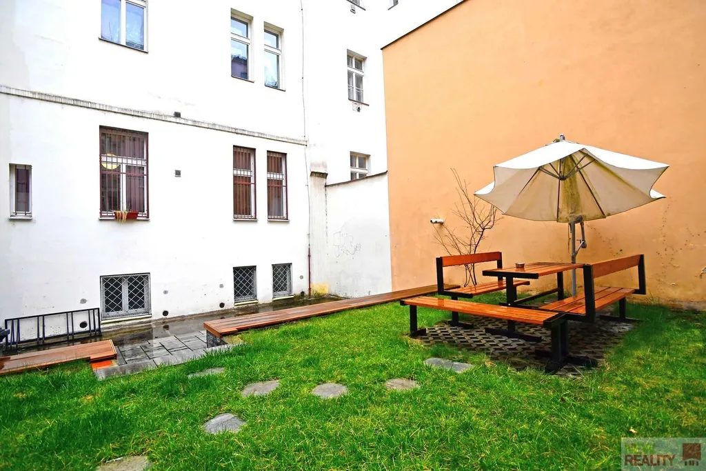 Okna jsou orientována do hezkého a udržovaného vnitrobloku se vstupem pouze pro rezidenty domu. Západní orientace přináší příjemné denní světlo a velkým benefitem je možnost využívat klidný zelený prostor k posezení a odpočinku prakticky kdykoliv během dne.
