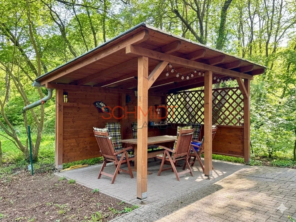 Celková plocha pozemku činí 567 m². Kromě již zmíněné chaty je zde funkční udírna, dřevník a uzamykatelná kůlna na nářadí. K posezení na oplocené zahradě slouží nová dřevěná pergola.