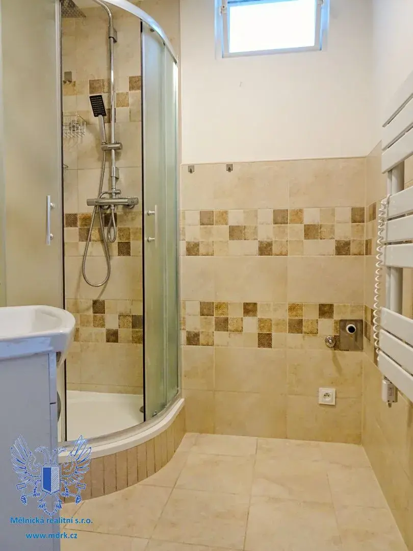 Exkluzivně vám nabízíme byt 2+kk v osobním vlastnictví nacházející se ve zvýšeném přízemí panelového domu s výhledem do zeleně na adrese Slovany 2804, Mělník. Tento byt prošel před dvěma lety celkovou rekonstrukcí, která vdechla celému prostoru moderní nádech s šikovně vymyšlenou dispozicí, praktickou koupelnou a kuchyní se zabudovanými spotřebiči. Dispozičně se byt skládá z ložnice, obývacího pokoje s kuchyňským koutem, koupelny, samostatného WC, komory a chodby, to vše s celkovou užitnou plochou cca 49 m2, přičemž k bytu ještě náleží sklep v suterénu o výměře cca 2 m2. V kuchyňském koutu s vlastním oknem najdeme vkusně zařízenou linku se zabudovanou lednicí, myčkou na nádobí, dřezem, digestoří a el. troubou s el. sporákem. Koupelna je vybavena sprchovým koutem, umyvadlovou a zrcadlovou skříňkou a el. topným žebříkem. Součástí prodeje je i rohová šatní skříň v ložnici, botník a police v komoře. Do bytu je přiveden optický internet, vytápění a ohřev vody dálkové. Dům je zateplen, má plastová okna, vchodové dveře na čip a nachází se v klidné části Slovany, kde v blízkém okolí najdeme potraviny, mateřskou školku, školu, zastávku PID s přímým spojením na Prahu a další občanskou vybavenost. Pokud se vám zdá tento byt zajímavý, tak se mi neváhejte ozvat a domluvíme si prohlídku. V případě více zájemců si majitel vyhrazuje právo prodat nemovitost nejvýhodnější nabídce.