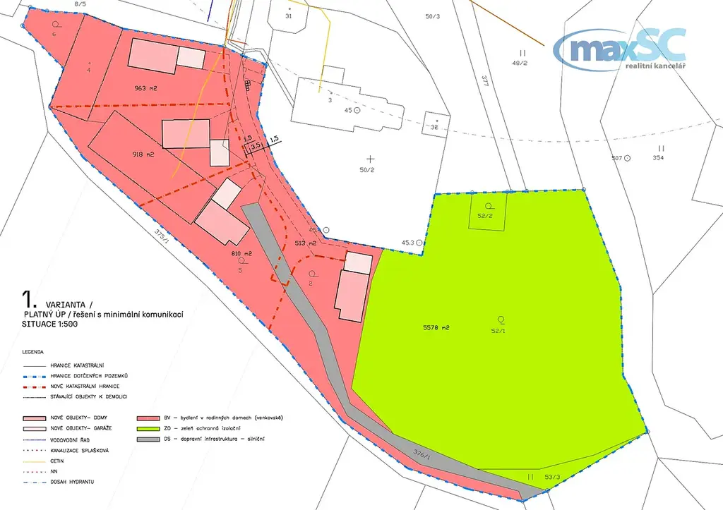Pro vaši představu jsme nechali zpracovat varianty možného využití území s maximální efektivitou, avšak při zachování dostatečného komfortu venkovského bydlení.