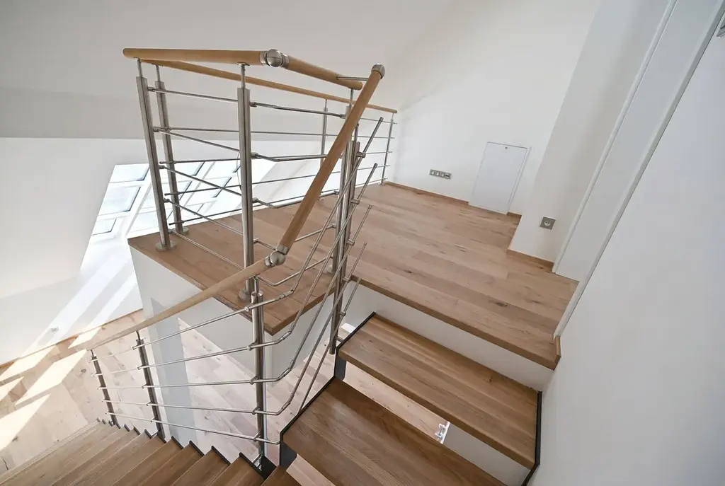 Zcela nový mezonetový podkrovní byt 2+kk o celkové ploše 72 m², včetně terasy 8 m², je součástí projektu moderního bydlení v citlivě zrekonstruovaném historickém domě na Praze 5 – Smíchov. Dům prošel kompletní renovací včetně výstavby nového výtahu.