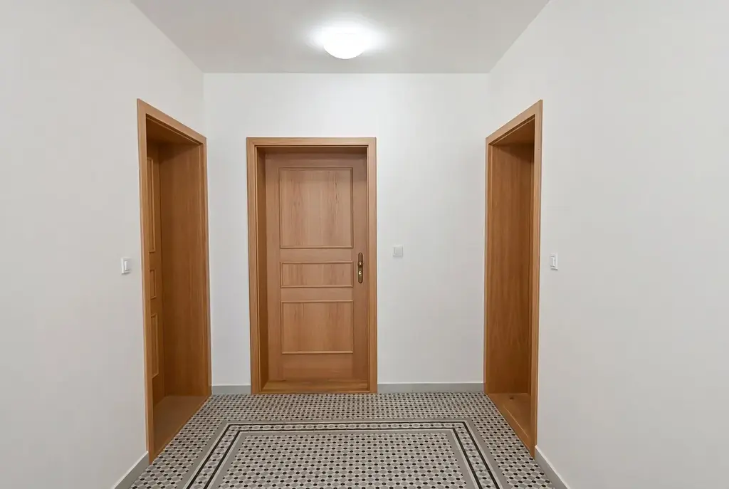 Byt se pyšní nadstandardním vybavením – masivní dřevěné podlahy a interiérové dveře, designová koupelnová sanita, velkoformátová kalibrovaná dlažba a obklady, podlahové vytápění a příprava na klimatizaci. K dispozici je také sklepní kóje.