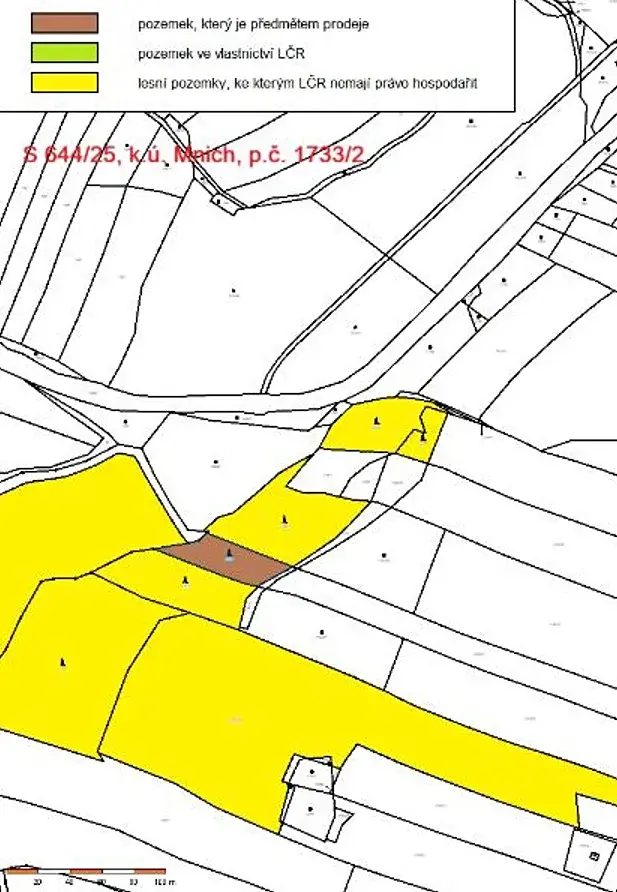 Jedná se o prodej lesního pozemku parc. č. 1733/2 o výměře 1237 m2, nepravidelného tvaru, dobře přístupného, obklopeného lesními a zemědělskými pozemky jiných vlastníků. Na pozemku se nachází vzrostlý smrk a část pozemku je zarostlá buření.