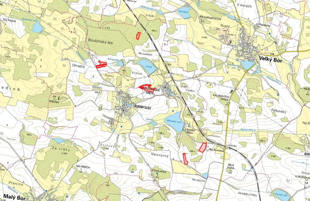 64/6, 64/8, 67, 70/2, 70/3, 71/19, 71/20, 71/21, 71/37, 154/5, 155, 168/14, 168/18, 212/4, 483/6, 497/10 a 212/1.